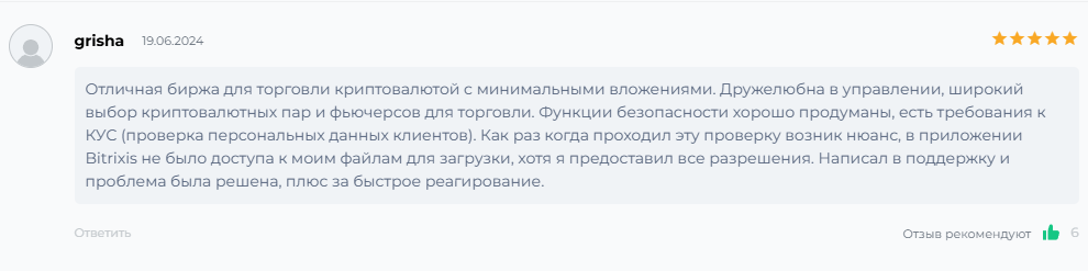 Юзер под ником Grisha считает, что площадка хорошо подходит для торговли с минимальными вложениями, отметил быстрый ответ от техподдержки с почты support@bitrixis com.