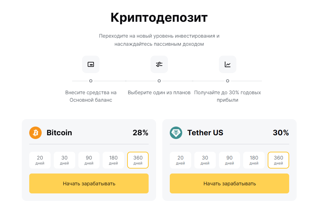 Клиентам доступна маржинальная торговля на спотовом рынке, есть фьючерсы и криптодепозиты для получения пассивного источника дохода. У трейдеров на платформе «Битриксис» есть финансовые инструменты для заработка на волатильности рынка, а холдеры получают безрисковый инструмент для наращивания капитала.