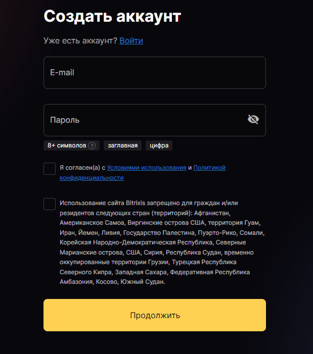 В отзывах о бирже Bitrixis и по данным из Сети, администрация сервиса не планирует блокировать клиентов из России и СНГ. Возможно, в будущем что-то и измениться, но на июль 2025 года весь функционал доступен без VPN.