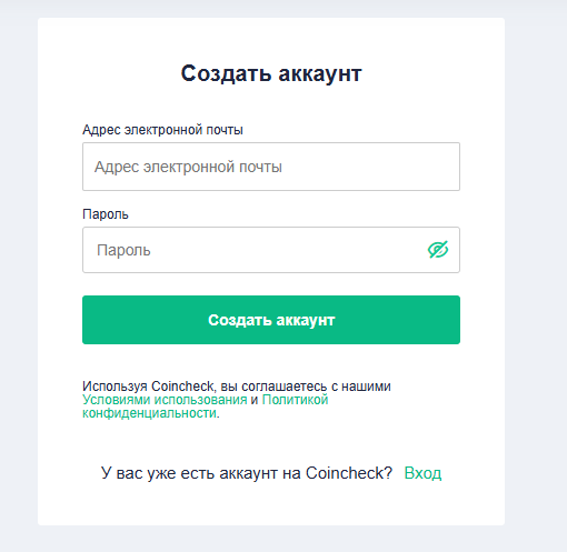 Для создания личного аккаунта нужно перейти на официальный сайт coincheck com. Доступно два варианта регистрации:
