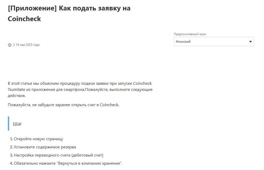 Как таковой отдельной образовательной программы на Coincheck нет. Но у начинающих трейдеров есть возможность получить подробное руководство по работе на криптовалютной бирже. Предварительно нужно оформить специальную заявку.