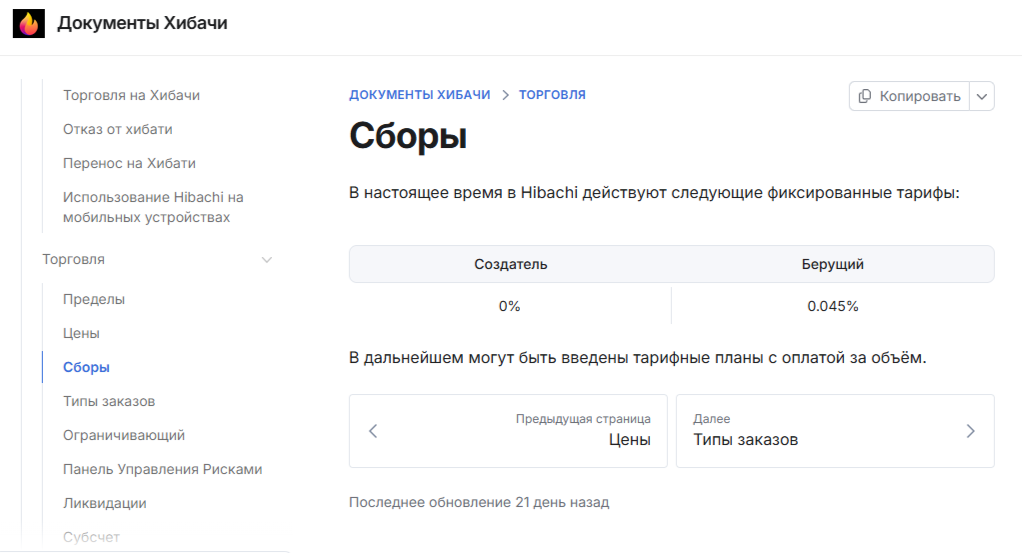 При фьючерсной торговле на Hibachi действует система фиксированных комиссий, которые на порядок меньше средних значений по рынку. С тейкеров сбор не удерживается, операции мейкеров облагаются комиссионными в размере 0,045%. Пока никаких программ лояльности на сервисе не действует, однако организаторы предупреждают, что планируют ввести градацию тарифов в зависимости от объема торговли трейдера.