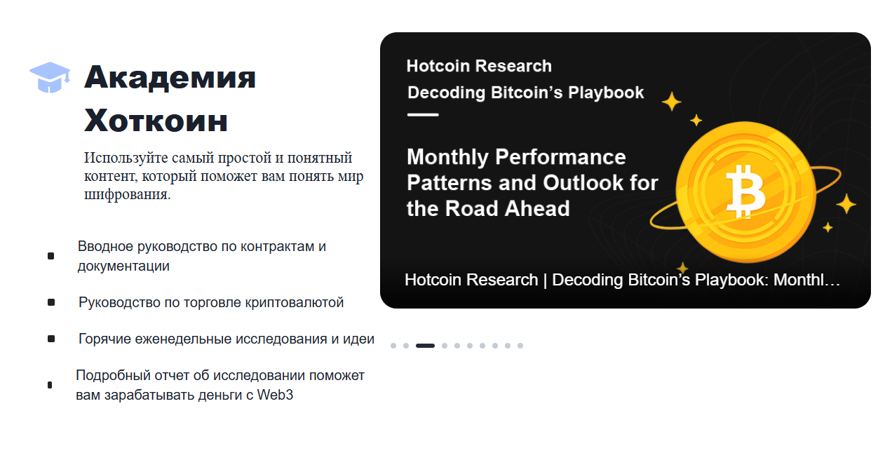 На сайте и в мобильных приложениях биржи пользователи найдут раздел «Академия Хоткоин».