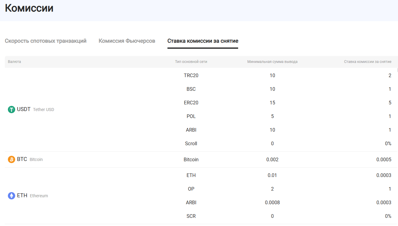 • За вывод средств. Причем комиссия взимается как при снятии в криптовалюте, так и при переводе на банковскую карту. Максимальный процент берется при выводе в USDT и может достигать 5%.