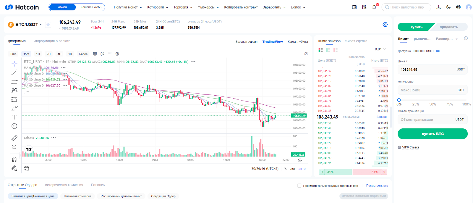 Криптовалютная биржа Hot Coin com взимает комиссии в трех случаях: