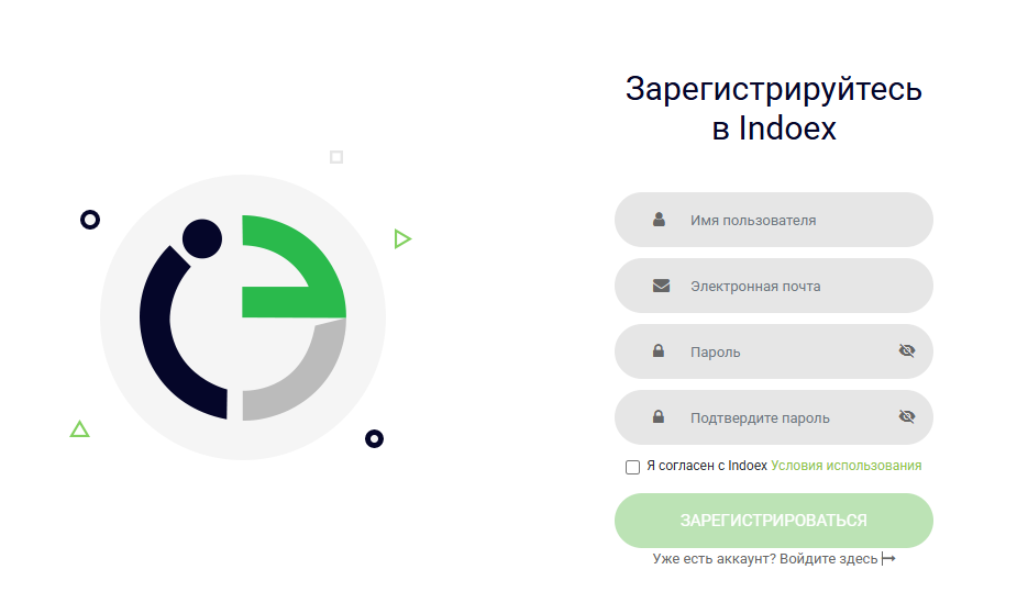 Регистрация на официальном сайте «Индоекс»и верификация аккаунта