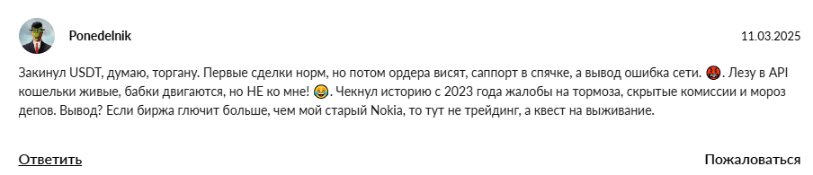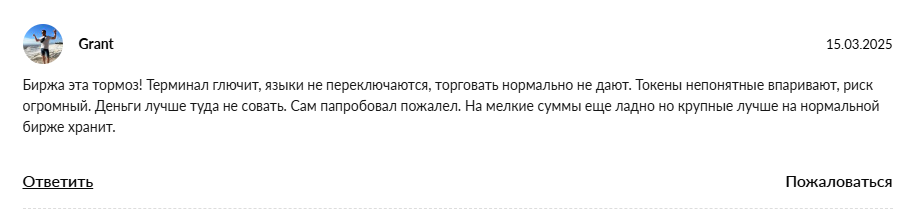 - в Сети есть негативные отзывы пользователей, которые говорят о технических проблемах биржи.