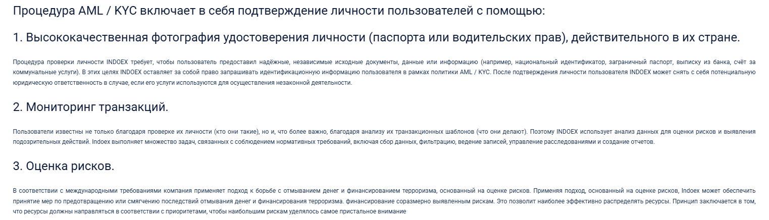 Чтобы получить доступ ко всему функционалу биржи, каждый клиент должен пройти верификацию. Создатели Indoex аргументируют это борьбой с мошенничеством и отмыванием денег.