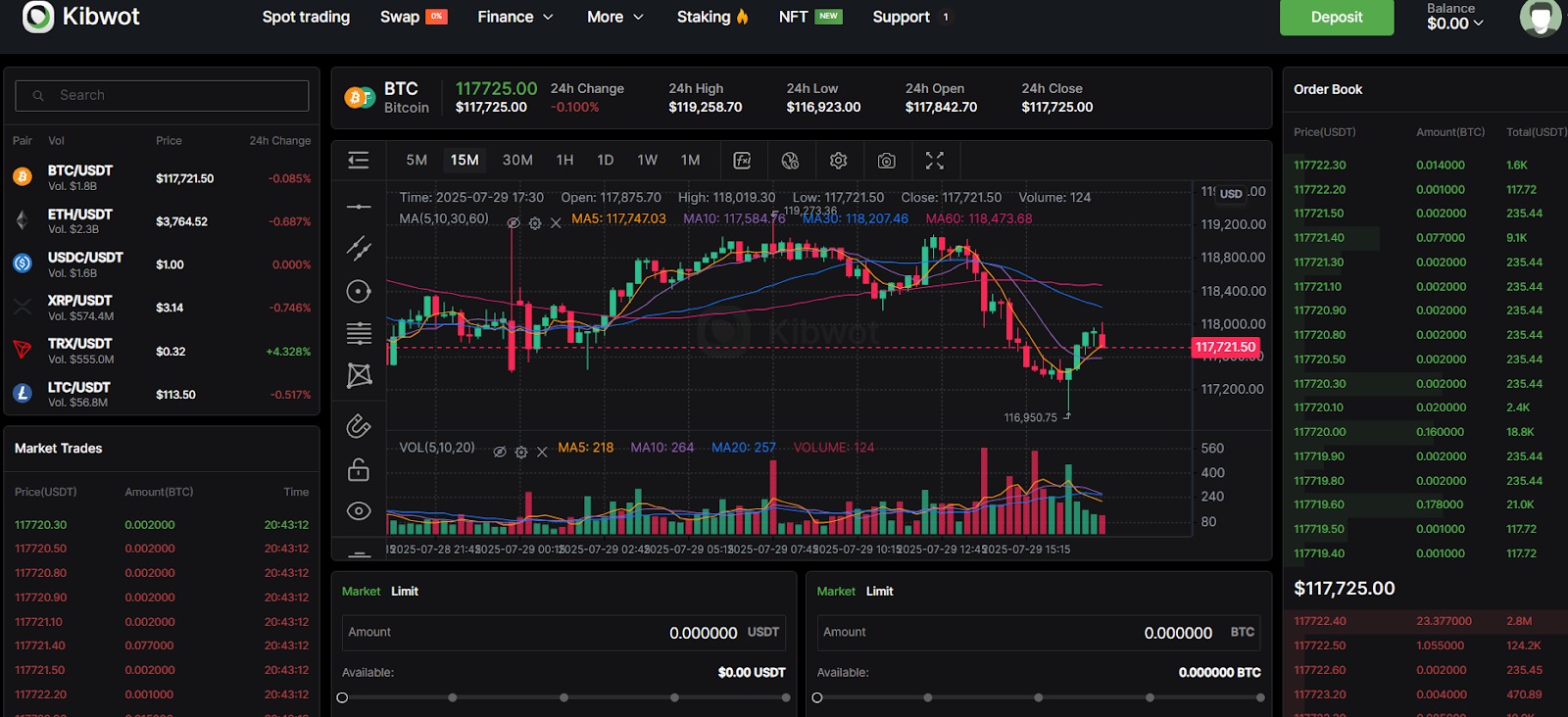 Обычно надежные биржи позволяют изучать особенности работы, в том числе графики курсов активов даже незарегистрированным клиентам.. На Kibwot же доступ без создания аккаунта закрыт, в каких-либо рейтингах проект не обнаружен, объективно оценить его нет никакой возможности.