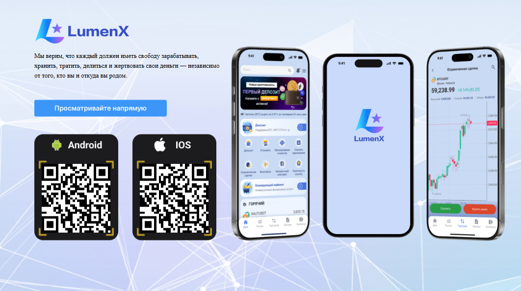 Загрузить мобильную версию для iOS и Android можно с сайта lumenx22 com. Команда разработчиков сообщает, что их приложения удобны для того, чтобы всегда иметь доступ к своим средствам, майнить крипту, пересылать цифровой актив независимо от того, где находится человек. Скачать приложения можно по QR-кодам.