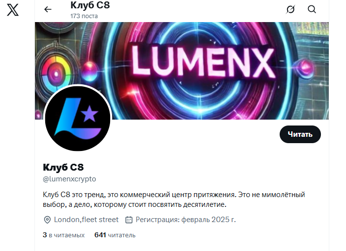 - У биржи LumenX есть C8 клуб — официальный аккаунт сообщества, но на нем нет никакой информации, поэтому данный факт ухудшает общее впечатление о ресурсе.