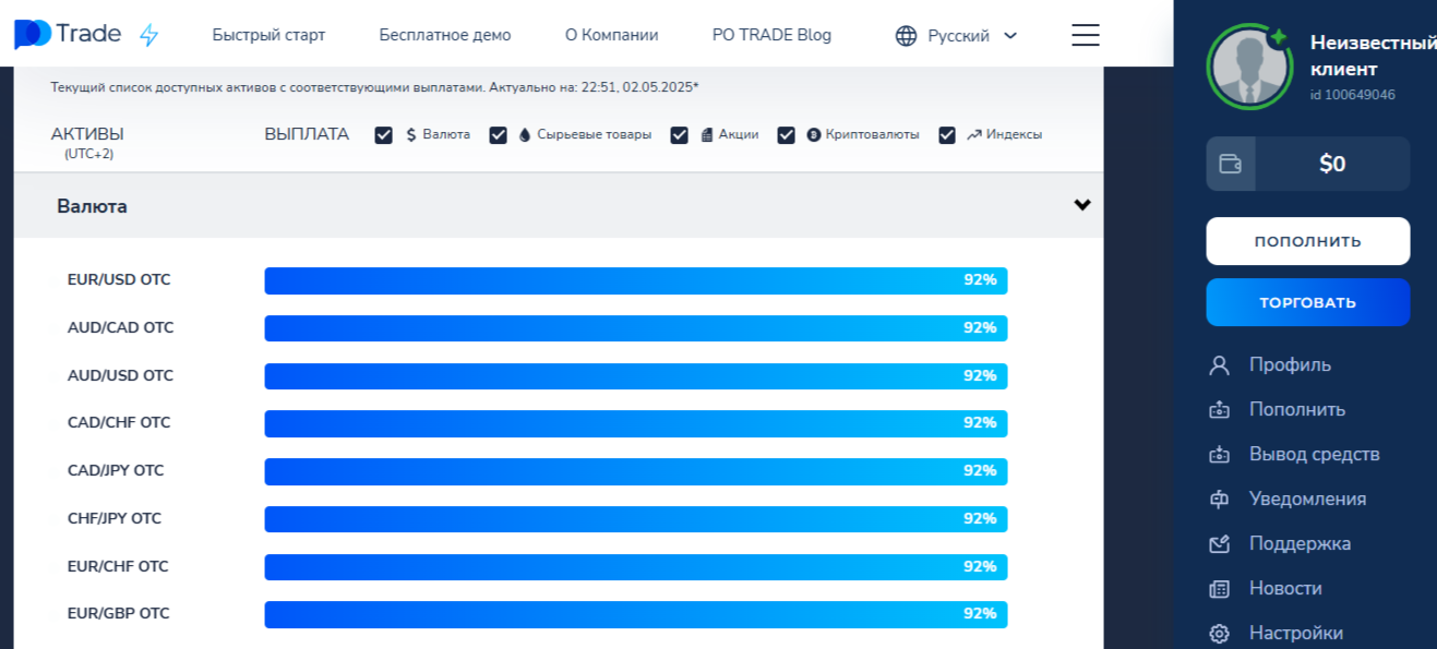 В остальном для россиян доступен полный набор инструментов и торговых опций биржи. Имеющиеся сообщества в социальных сетях Pocket Option на русском языке не ведутся.