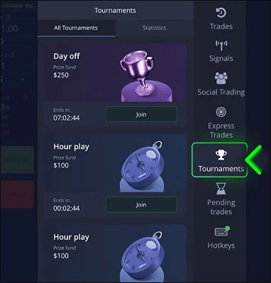 - Турниры. Вспомогательная опция, при помощи которой трейдер определяет, можно ли торговать на Pocket Option и пробует свои силы в анализе Она представляет собой состязание между участниками, где сделки заключают на виртуальном счете. Реальными активами пользователи в данном случает не рискуют, а победитель получает оговоренные призы.