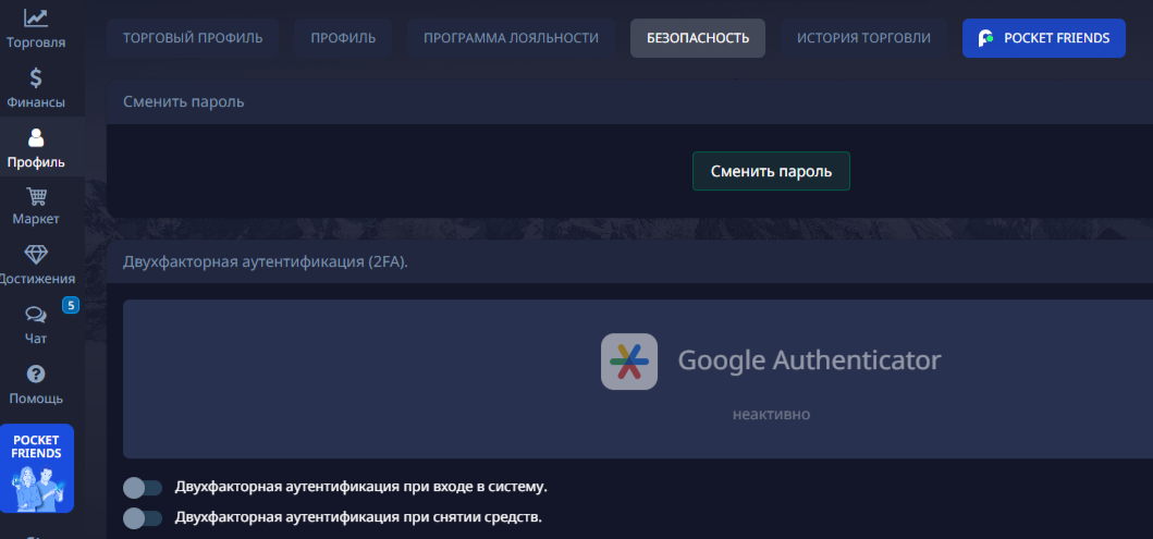 Для защиты аккаунтов пользователей на бирже применяется технология двухфакторной аутентификации и шифрование данных. Верификация на Pocket Option повышает безопасность транзакций, т.к. доступ к платформе получают только аффилированные лица. В зависимости от настроек 2FA может активироваться как при входе пользователя в личный аккаунт, так и при попытке снятия средств.