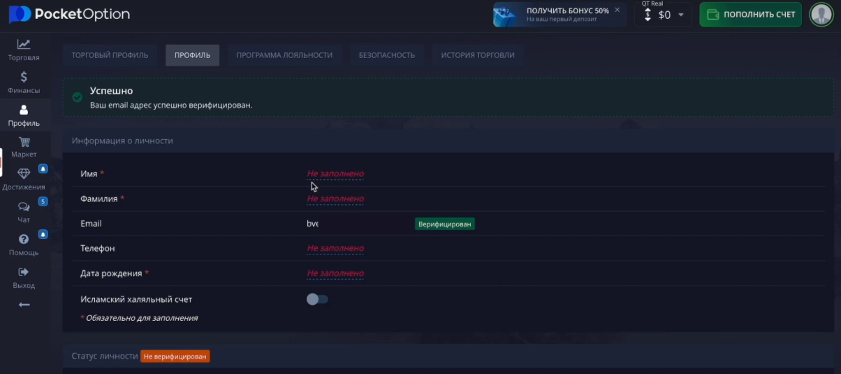 Финансовые операции могут осуществлять только пользователи, прошедшие регистрацию на Pocket Option и подтвердившие свою личность. Тем, кто не прошел проверку KYC, доступна только демоверсия площадки с виртуальными средствами, которые невозможно монетизировать.