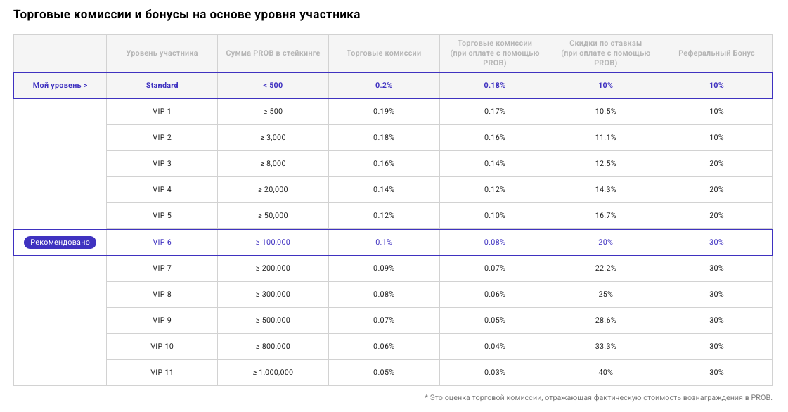 Бонусная программа на Пробит конечно знатная, но надо и банк иметь не малый, чтобы за счёт стейкинга получать те самые бонусы. Я не считаю, что комиссия 0,05% сильно отличается от 0,19%. А инвестиции на VIP11 начинаются с ляма.