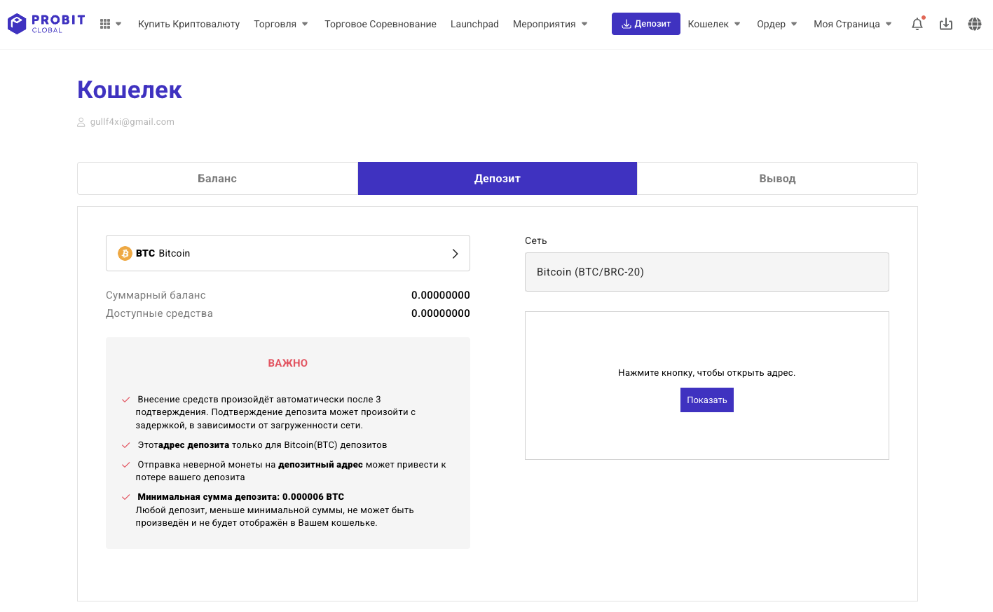 На платформе нет ограничений по депозиту для большинства криптовалют. Мы просмотрели несколько десятков популярных монет, и обнаружили, что лимиты предусмотрены только для BTC.