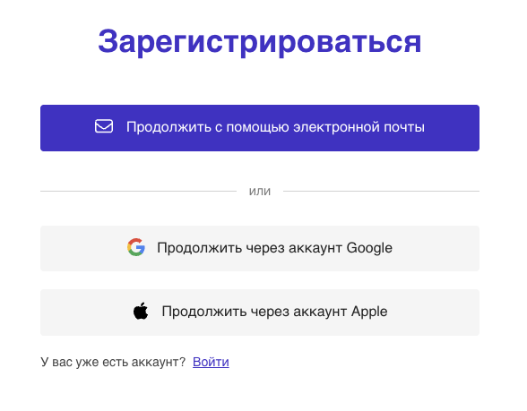 Зарегистрироваться на бирже можно при помощи адреса электронной почты либо сервисов Google или Apple. Затем, если будет необходимость, в настройках можно поменять способ авторизации.