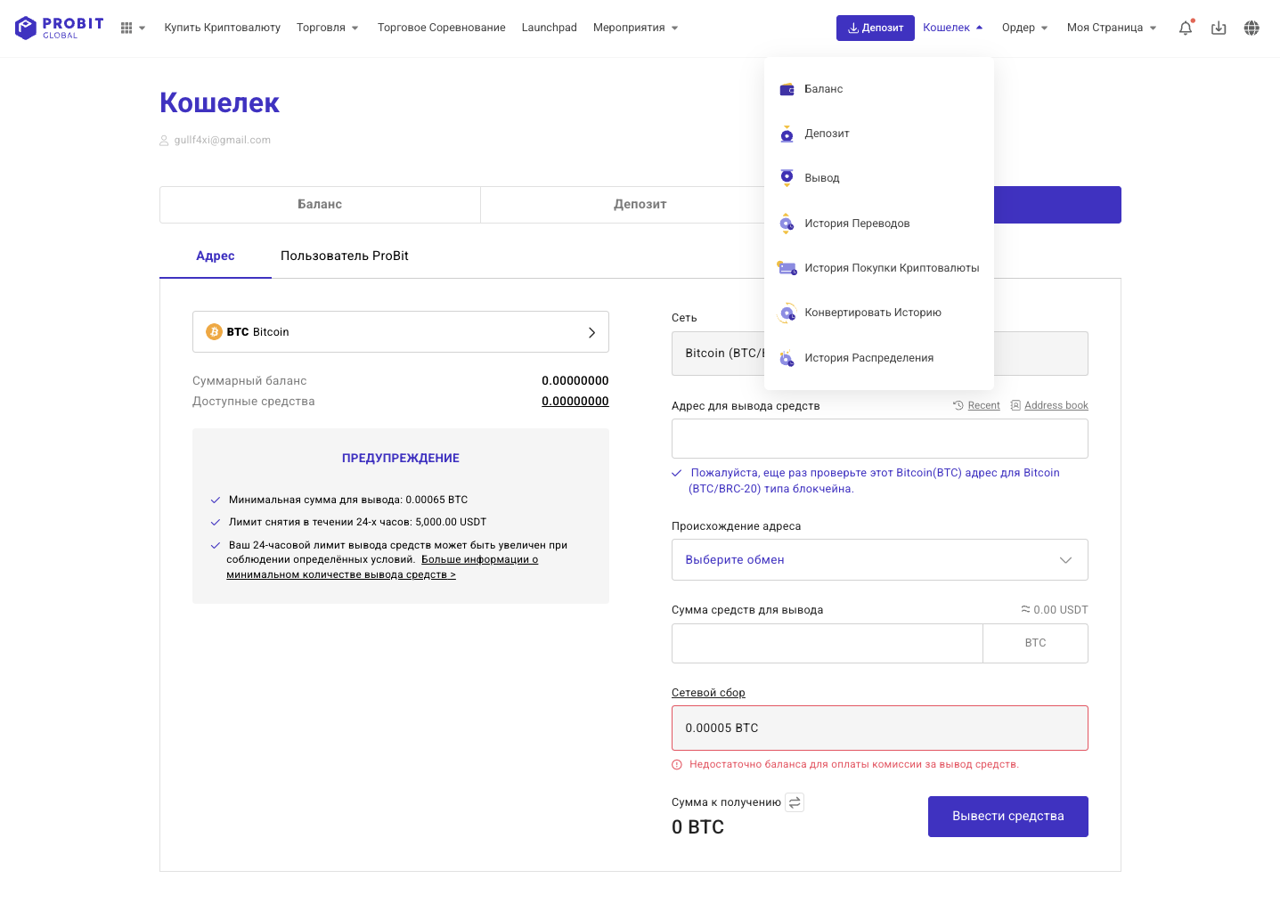 Единственное решение — обратиться в техподдержку. Это можно сделать через форму обратной связи в личном кабинете. Также обратиться в саппорт возможно по email support@probit.com.