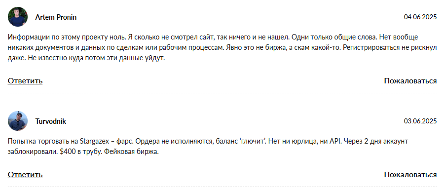 У платформы Stargazex com плохая репутация в интернете, на сторонних сайтах можно встретить только негативные отзывы о площадке. Многие пользователи указывают на то, что они заметили неладное еще на этапе проверки площадки. Однако кто-то и на своем опыте убедился, что сервис работает нечестно и не выводит средства трейдеров.