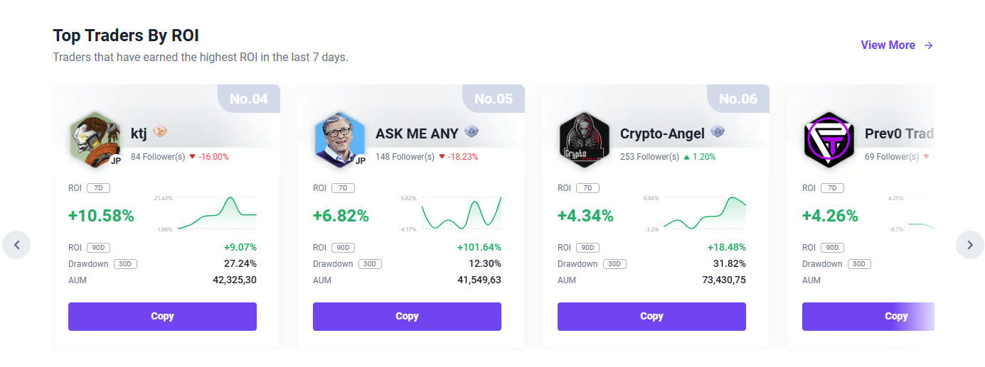 - Копитрейдинг позволяет повторять сделки других пользователей, ознакомившись предварительно с доходностью и прочими особенностями портфеля инвестора-эксперта. Тут вновь есть немало странностей, одной из которых является недоступность этой функции для неверифицированных клиентов. Однако больше напрягает отсутствие изменений в разделе: здесь всегда указаны одни и те же инвесторы с одинаковой доходностью. Кажется, что сервис просто создает видимость реальной работы.
