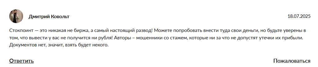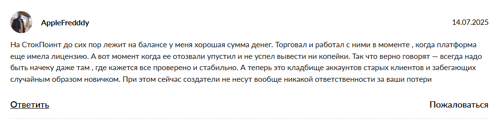 В итоге, StockPoint сегодня — это «платформа-призрак», которая по-прежнему привлекает новых пользователей иллюзией работы, но не обеспечивает ни прозрачности, ни безопасности. На момент написания обзора, редакция рекомендует обходить эту площадку стороной и не рисковать своими деньгами.