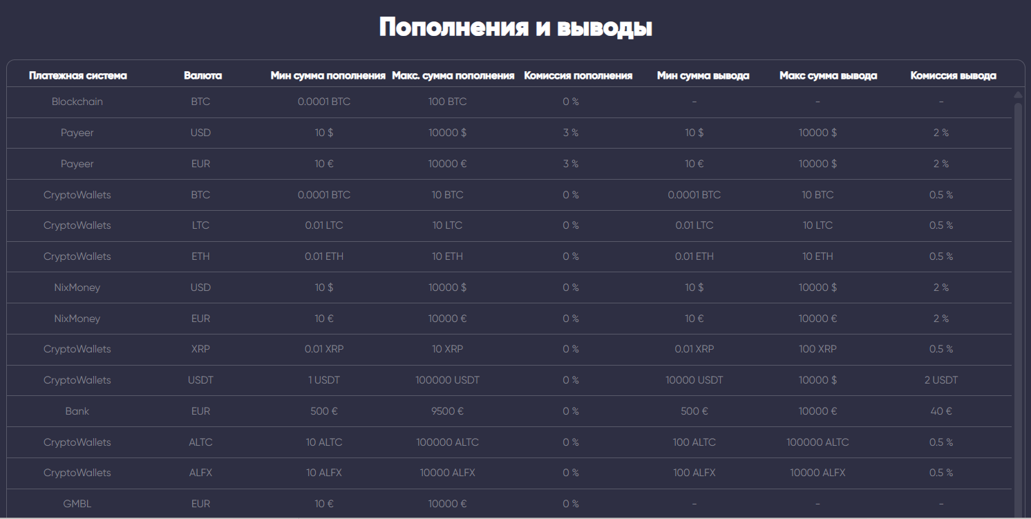 • Комиссия на вывод — до 2%. Точный процент зависел от выбранной валюты.