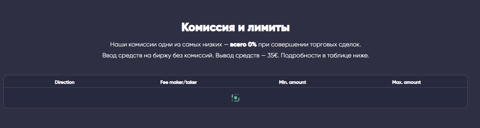 Одной из привлекательных сторон биржи Stock Point были ее низкие комиссии. Сейчас таблица с комиссиями и лимитами на официальном сайте недоступна.