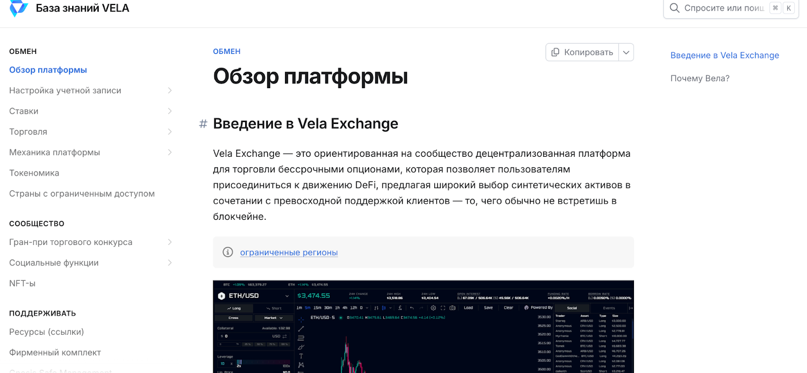 Vela Exchange не позиционирует себя в качестве платформы для новичков, поэтому обучения здесь нет. Базовые знания можно найти во вкладке Knowledge Base.