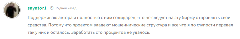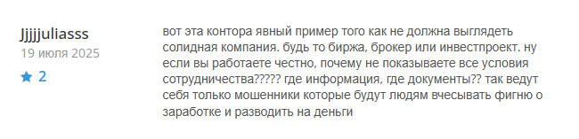 Еще один клиент подозревает биржу в мошенничестве, говоря о том, что на сайте нет подтверждающих документов, лицензии и какой-либо другой информации.