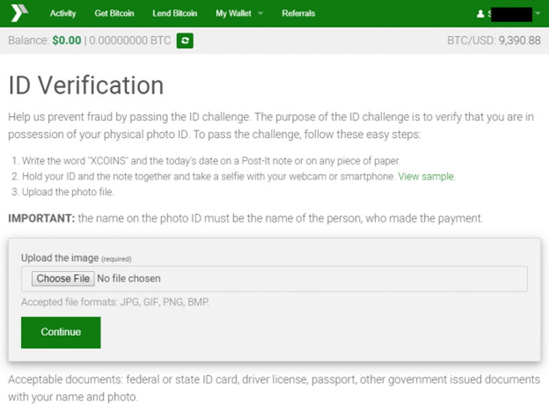 Также необходимо было сделать фото с надписью xCoins и актуальной датой регистрации для проверки против ботов.