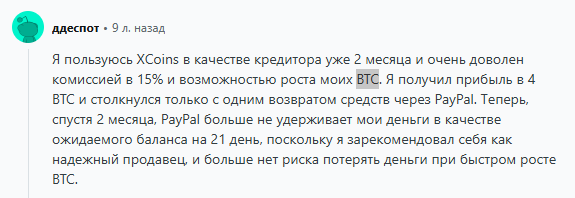 Инвестор с ником ддеспот утверждает, что xCoins реально приносит ему профит, причем он не торгует, как на других биржах, а занимается кредитованием BTC.