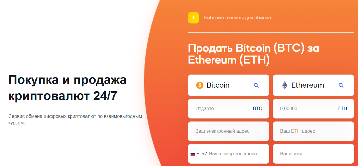 Минимальная сумма обмена на платформе составляет около 6.5 тысяч рублей. Актуальные лимиты зависят от текущего курса валют, поэтому они могут меняться. Помимо суммы и платежных систем, в форме оформления заявки понадобится ввести адрес электронной почты и номер телефона для связи. Комиссия биржи с платежей не взимается, торговые сборы уже заложены в курс транзакции.