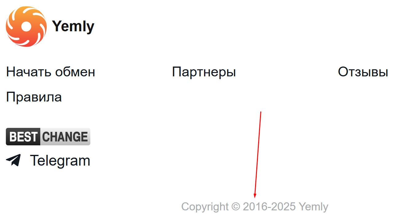 Единственным партнером проекта заявлен сервис мониторинга подобных проектов — BestChange. Вот только официальной страницы у Yemly на этом портале нет, а значит, его листинг на агрегаторе подтвердить нельзя. Платформа работает нелегально, ни регистрации, ни лицензии у нее нет.