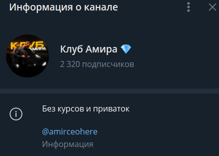 Попасть в него можно было по ссылке 一 Amirceohere. Интересно, что в шапке владелец сразу заявлял о том, что никаких курсов и приватных доступов админ Амир не продает.