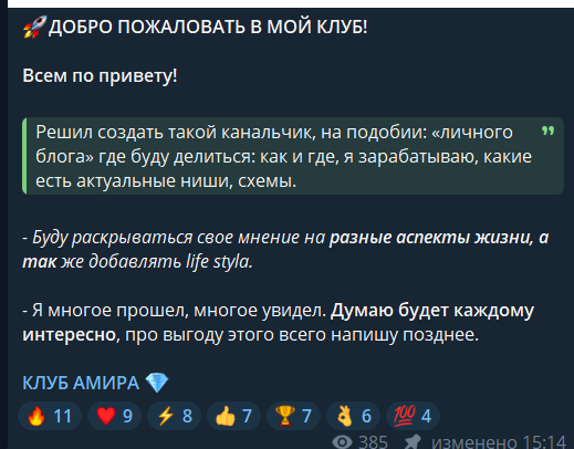 Телеграм «Клуб Амира»: обзор проекта и анализ отзывов подписчиков о контенте в ТГК